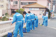 「地元の皆様とふれあい、地域をきれいにしたい」と考え、社会奉仕活動として、毎月1日に、社員全員で会社周辺のゴミ拾いに取り組んでいます。清掃活動を通じて地域に貢献し、困ったときにいつでも頼りにしてもらえる存在でありたい、すぐに駆けつけることができる安心感をお届けしたい、と考えております。